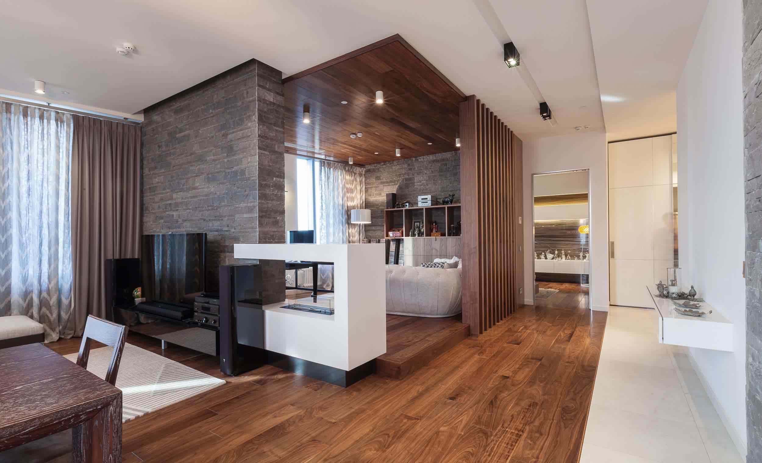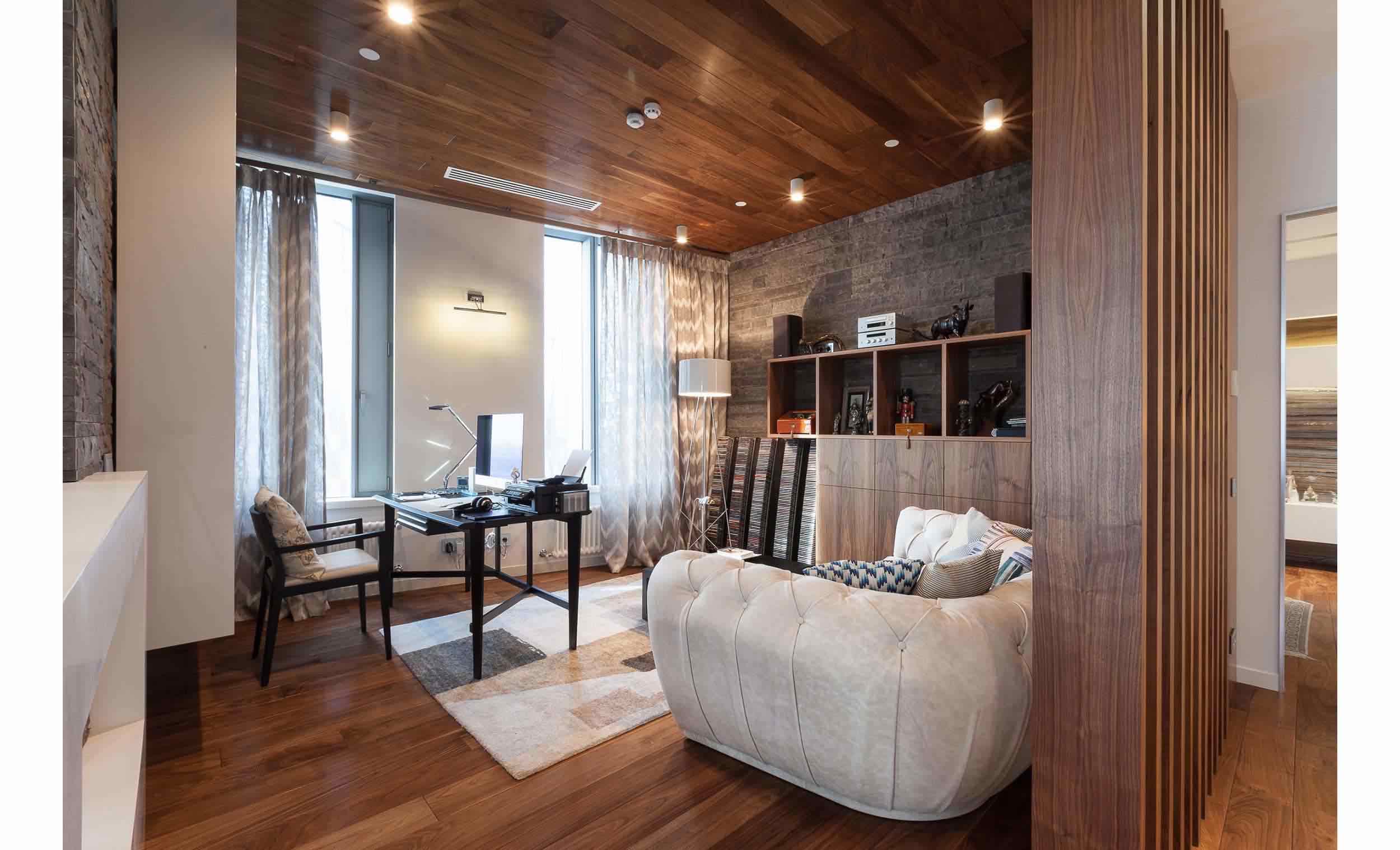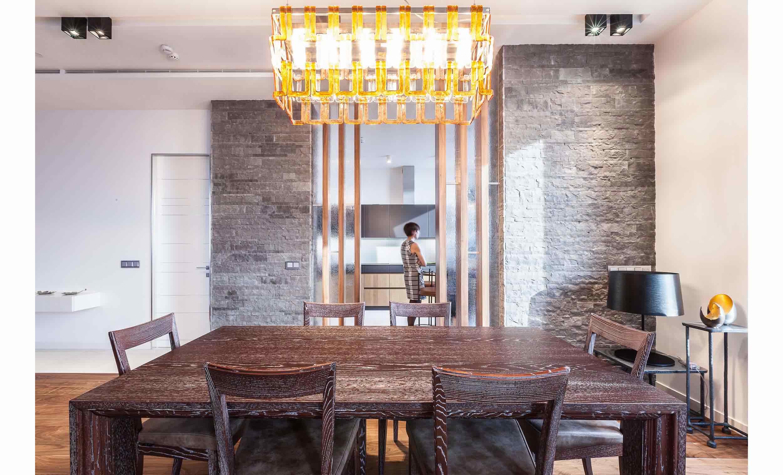 U skladu sa zahtevima, dobijen je stan stroge geometrije, sa prirodnim materijalima, nestandardnim rešenjima i suzdržanom koloristikom, što čini ovaj enterijer prepoznatljivim.