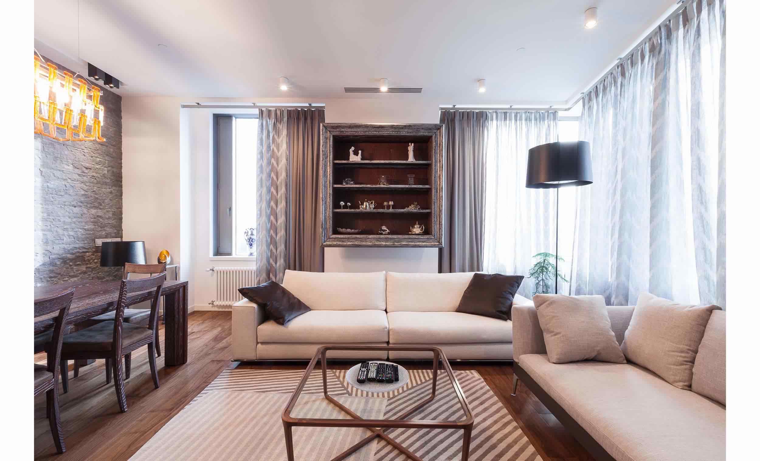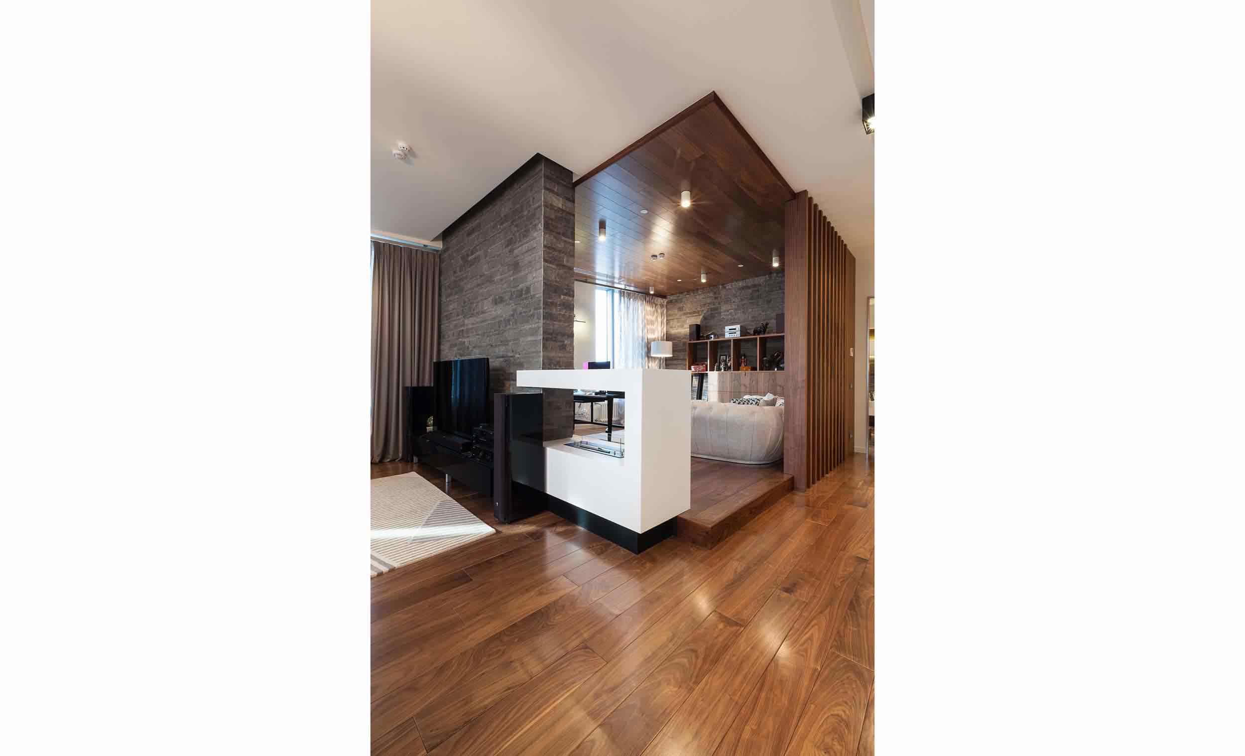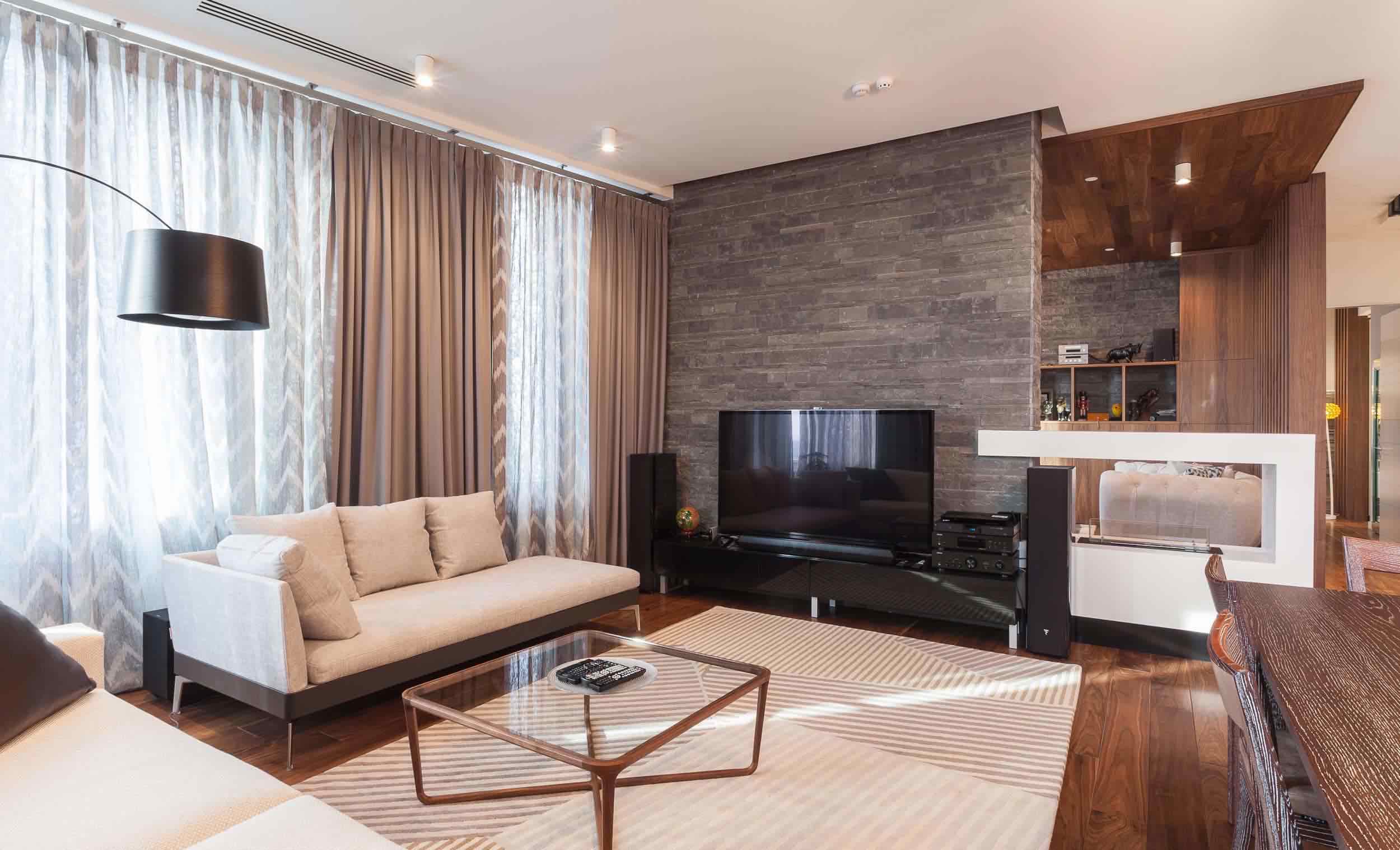 U skladu sa zahtevima, dobijen je stan stroge geometrije, sa prirodnim materijalima, nestandardnim rešenjima i suzdržanom koloristikom, što čini ovaj enterijer prepoznatljivim.